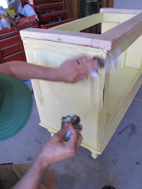 • We stained the top of the cabinet, using the same stain as for the yellow areas. {Minwax Dark Walnut 2716}