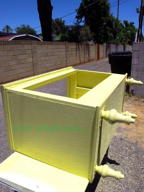 We chose a fairly bright and happy yellow {not that all yellows aren’t happy to me} that definitely was going to need some toning down through distressing.