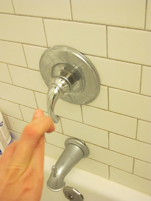 Next it was off to ACE to get the correct part. Each shower is different and takes the specific brand, so he made sure he knew which brand we had (Price Pfister) prior to heading to the store. If you are not sure, you can always just bring your part to the store and they will tell you what you need. The part itself was around $45, not cheap but definitely cheaper than calling a plumber or using our home warranty, which has a $75 deductible.