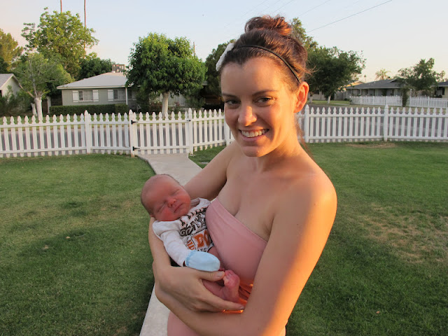 - My mom babysat him at 3 weeks so we could go to a friends graduation party, and then she also came and stayed the night {and fed him through the night, so I got a solid nights sleep!} this past weekend. Sleeping for 8 hours IN A ROW was heavenly!