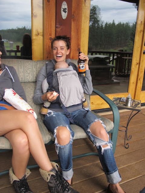 Haha, yes my jeans are way too ripped, but this is what happened often that weekend. Beer, snacks, and wearing my sweet baby:)