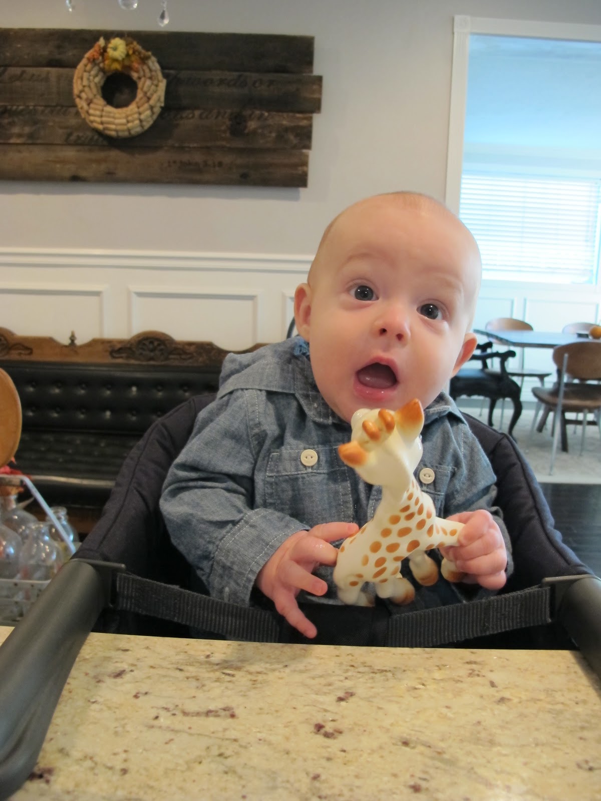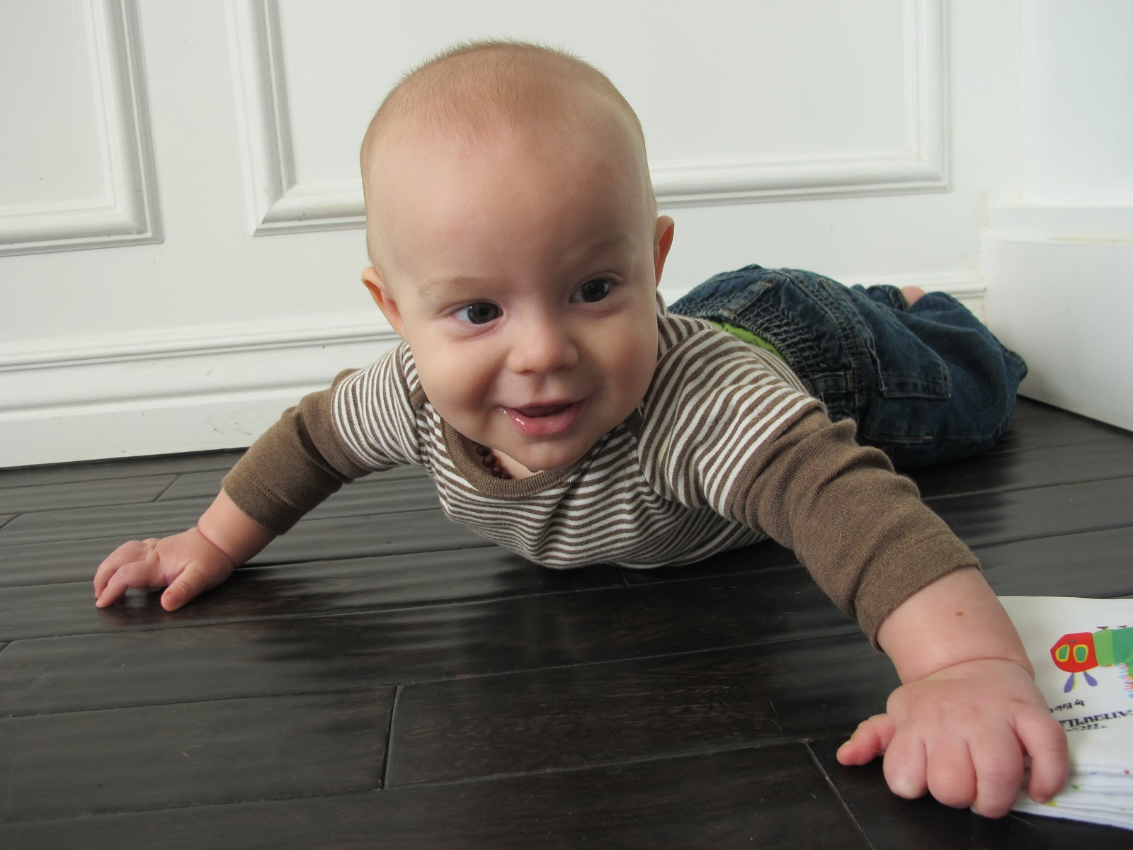 I literally cannot believe that Bray is already 1/2 a YEAR old! When did this happen? And more importantly, how can I slow it down? I know I have been saying it every month for the past few, but truly, this month has been the best month yet! SO much personality coming out, so much rolling, new skills, decent sitting, and far too many belly laughs to count. Here are some of the main things that have happened, and that I just want to remember for the future:)