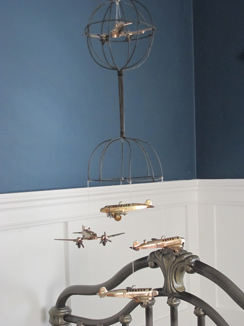 Vintage Airplane Mobile– Planes from eBay, Vintage hat holder from Junk In The Trunk Market