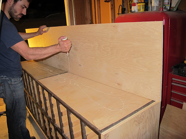 We mapped out where the legs were going to go and attached them to the underside of the bottom piece of plywood.