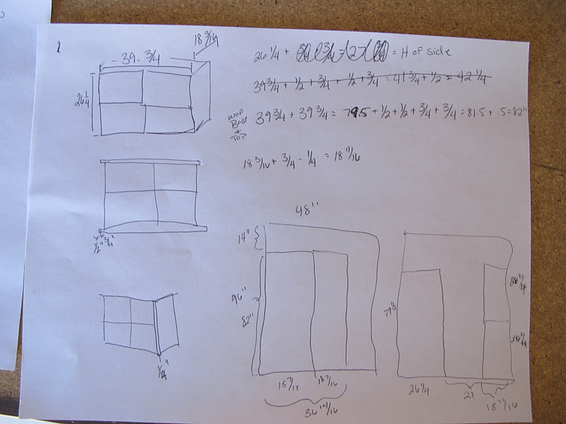 J went to Lowe’s and had some oak plywood cut to size. J needed 2 4’X8′ sheets of plywood and had 5 pieces cut; 1 bottom, 1 top, 1 back, and 2 side panels.