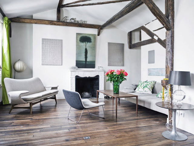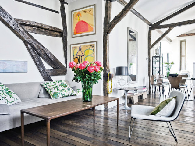 On Saturday night J and I had a hot date at a restaurant that had stunning beams all above you. Since then I have been day dreaming about beams. Man, oh man, I wish I had beams in my home. Doesn’t really make sense though when J can touch most of our ceilings while on his tippy-toes. Dang you 1952 ranch home!