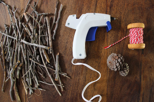 Red, gold, silver balls.  Sparkly snowflakes, and white snowmen.  All these ornaments are great, but don’t you ever just crave something a little more on the natural side?  And to not have to pay a lot for them?  Well, these ornaments I made were practically free.  It did require some manual labor from Braylen, who helped me gather the sticks at one of our local parks, but he didn’t mind too much;)