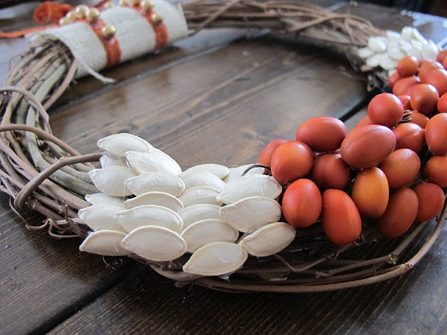 Umm, what?! The guy said she was fine as long as she was not actually eating the pods {who the heck would?!} but to wear gloves next time while working with them. Apparently the cute little fall wreaths we were about to make had a whole new level of excitement!