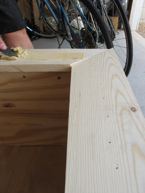 - Next we filled in all the holes and corners with wood putty and sanded the whole planter once the putty dried.