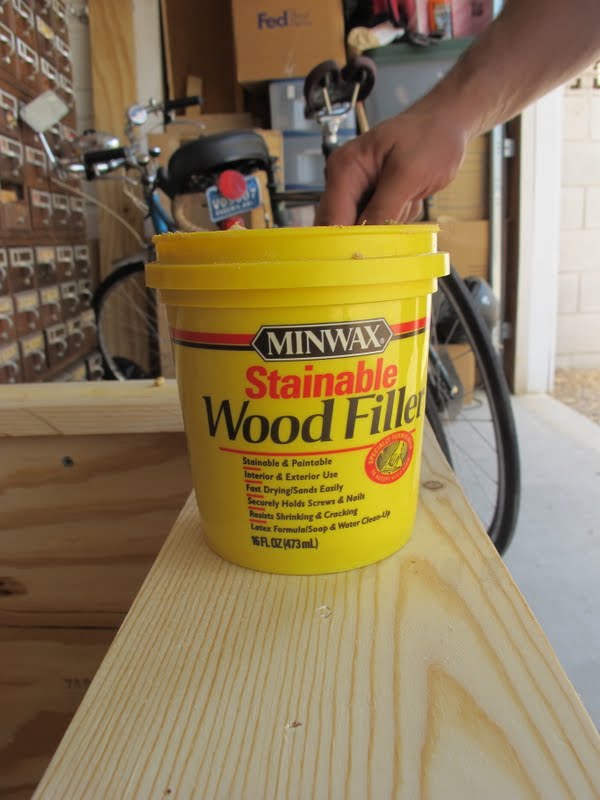 - Next we filled in all the holes and corners with wood putty and sanded the whole planter once the putty dried.