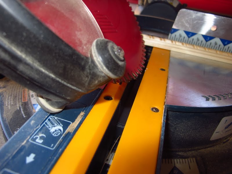 • Next step was to cut and install the trim pieces. He used the chop saw to mitre the corners and used the nail gun and glue to secure the trim to the cabinet.