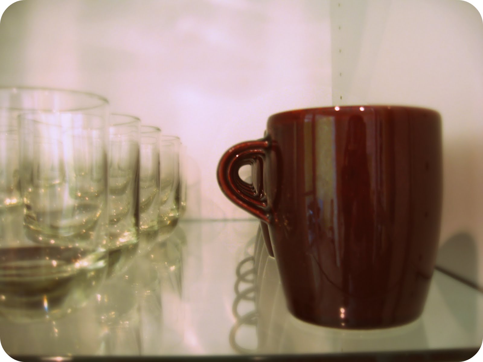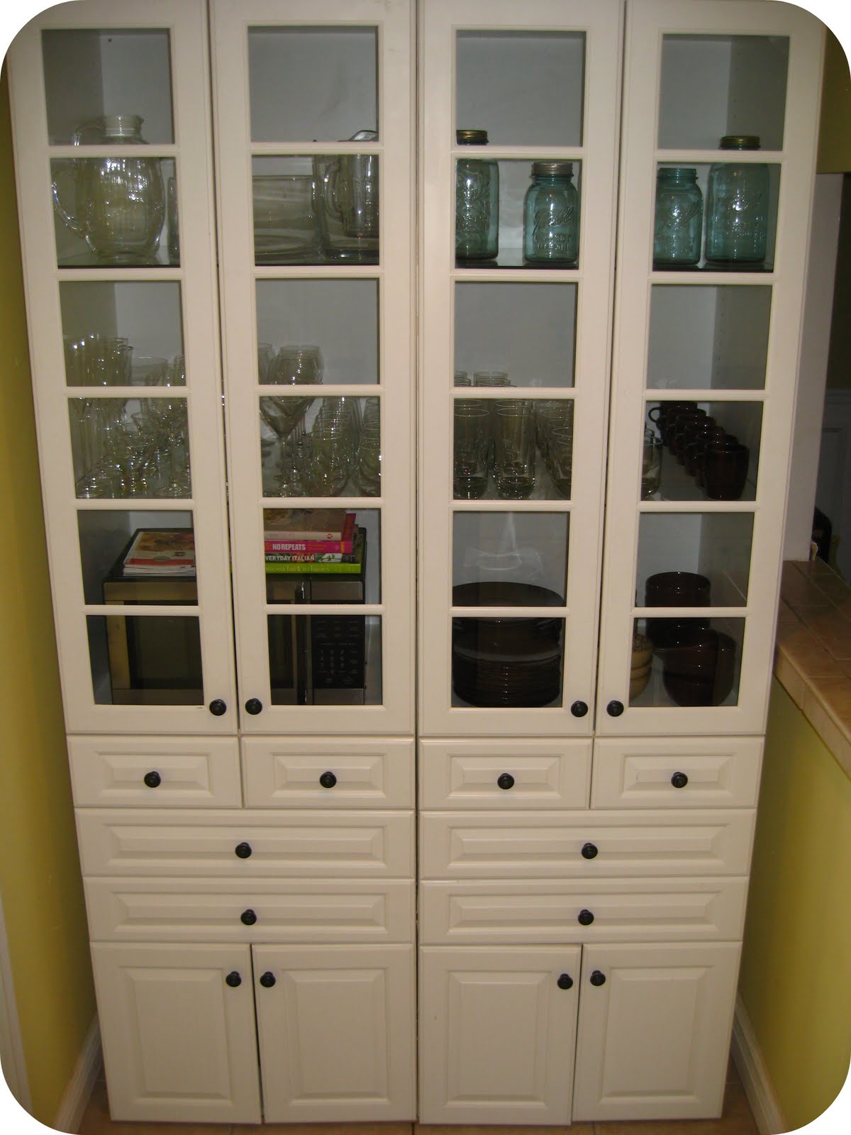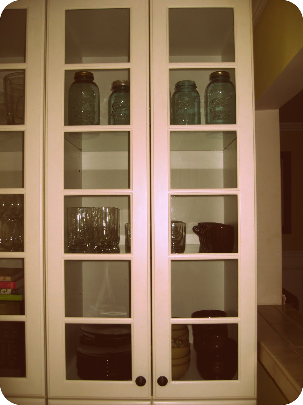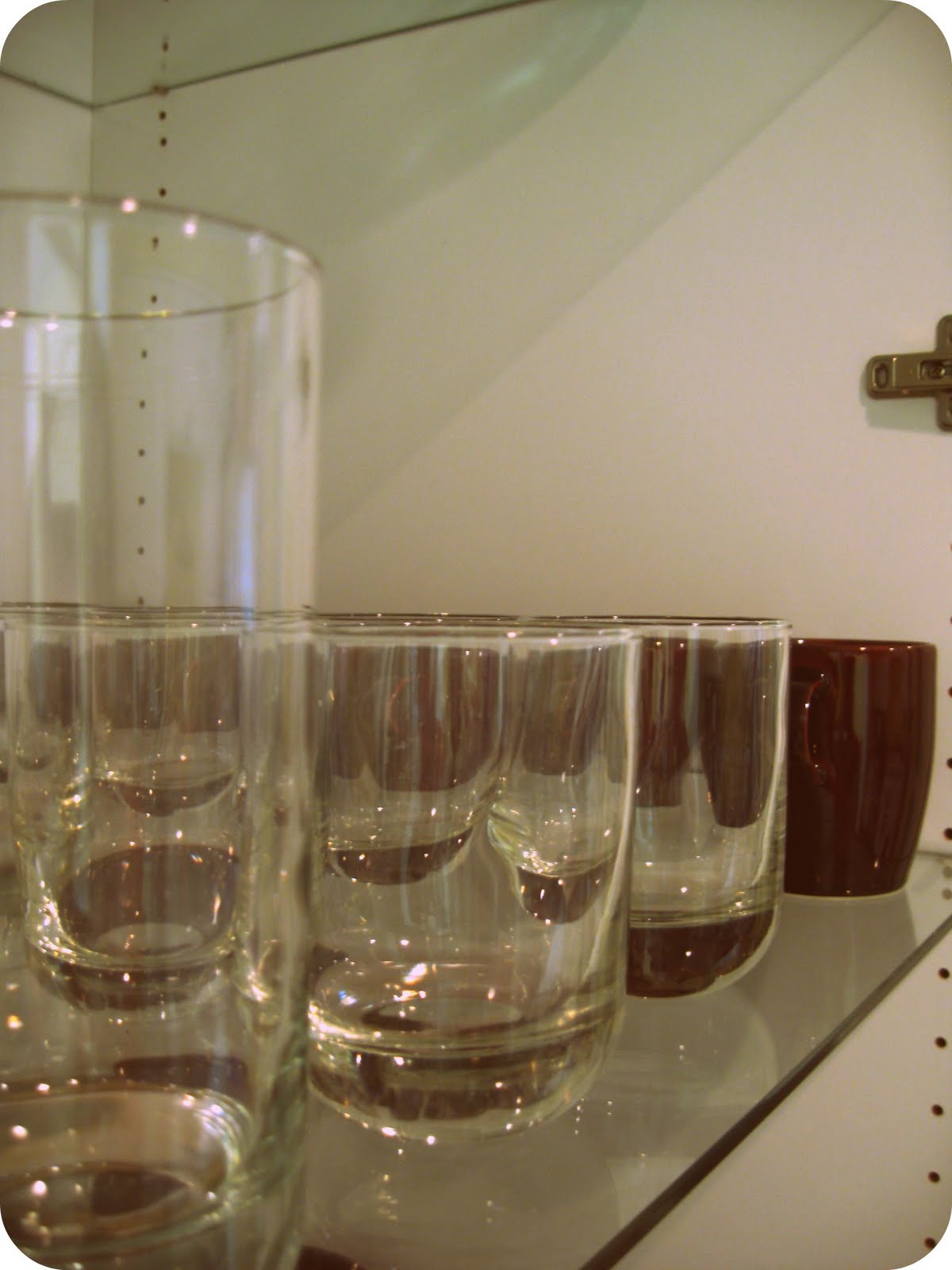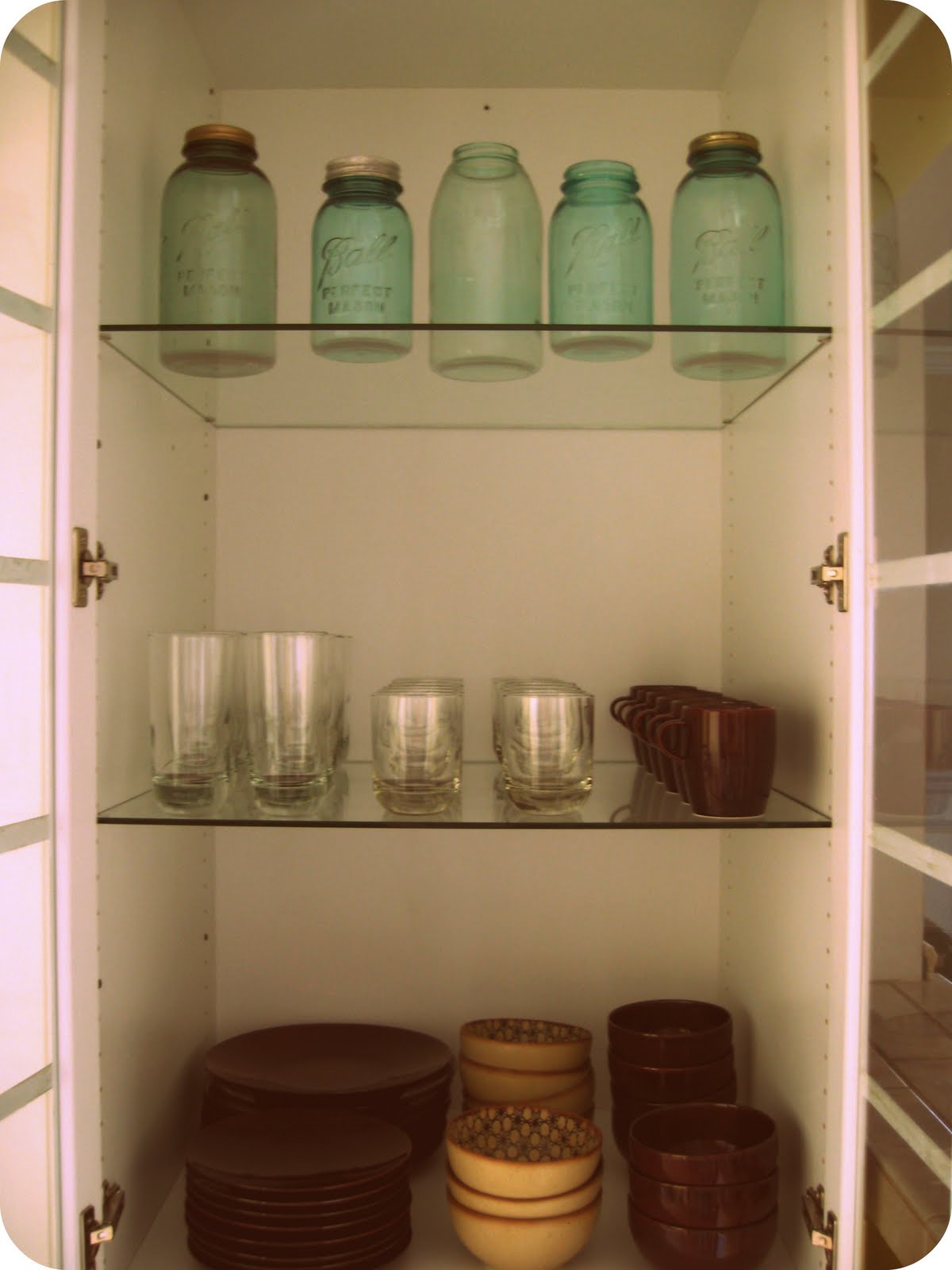 I am not exaggerating when I say that every time someone comes to our house and asks for a cup or bowl for something, they ALWAYS say, “Well do I actually take it out of there, or is that for looks?”. Or they say, “Oh you probably just straightened everything up in there before we came, huh?”. Really though, for me it is just as easy to put things away in a straight line then it is to just throw them in there. Call it OCD if you want, but hey- my dishes always look good:)