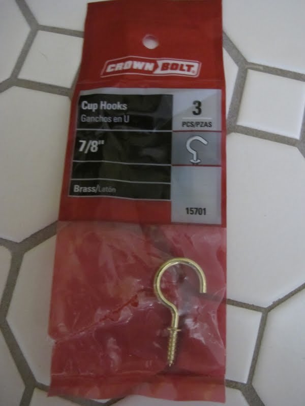 To get the cabinet ready, my handy hubby installed two hooks and a small galvanized metal dowel {that he cut to size with a hack saw} that we got at Home Depot.