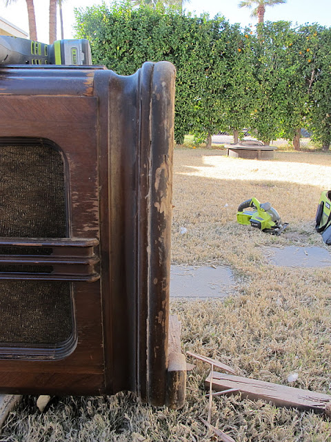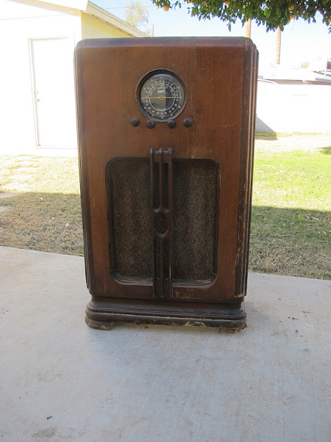 I would say restain the face of the wood and all the trim pieces paint it a fun colour. That way both the radio would pop and bring some fun colour into the home with out loosing its beautiful wood look.I would say stain it a dark walnut and the trim a fun red = )…tonya