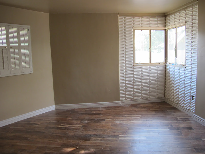 The office. The corner is by far my favorite. These white wall tiles have the feeling of a really thick paper plate, but look like actual tile! J saw them on Apartment Therapy and sent the website to Ryan for him to check out. It turned out so cool.