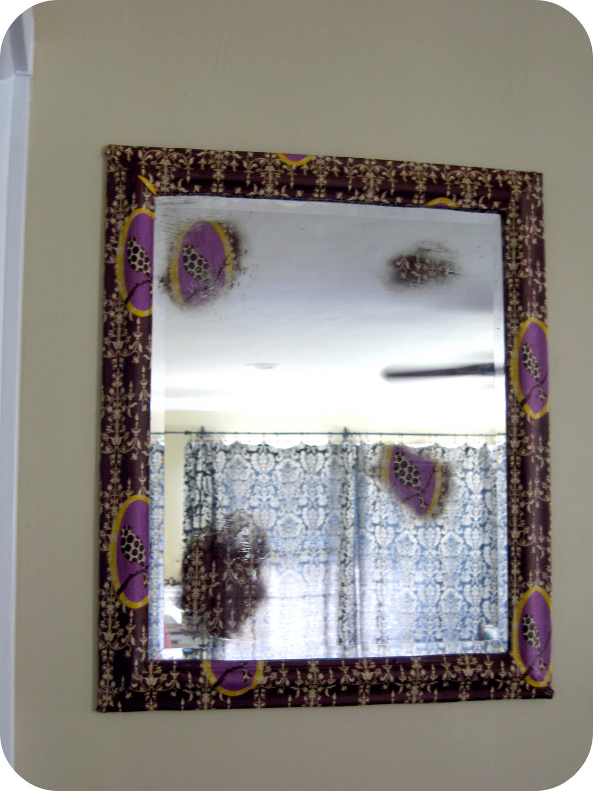 Thanks Angy! Jess, I think we will try it again, but this time just use a mirror that has a great frame to it and only do the fabric behind the mirror showing through. I think the whole frame being lined with the fabric was just too much!