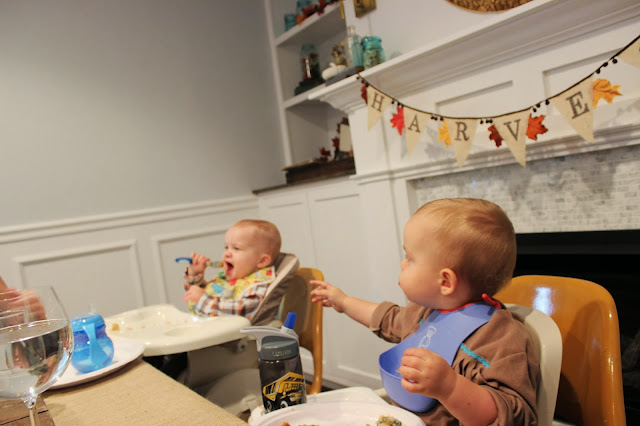 And the fact that these two goobers were the head of the table made it all even better. Watching them eat together was just about the cutest {and messiest} thing I have ever seen: