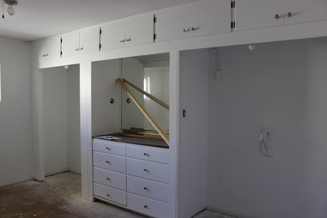 Do you ever have a painting project that you think will be easy-peasy, and you get in to it and it totally sucks? Wether it be it takes way longer than expected, or it isn’t looking how you want it… I think we have all been there and we instantly wish we had just hired a Houston painting contractor to do the work instead. Our first {and im assuming more to come} tricky painting project of this house was Braylens nursery built-ins. Here was what we were tackling: