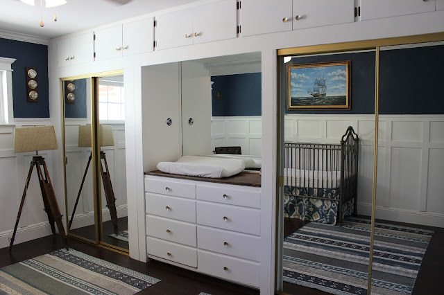 Going from that dark wood to white completely changed the room. I just love his room and it couldn’t have come with a more perfect changing table area!