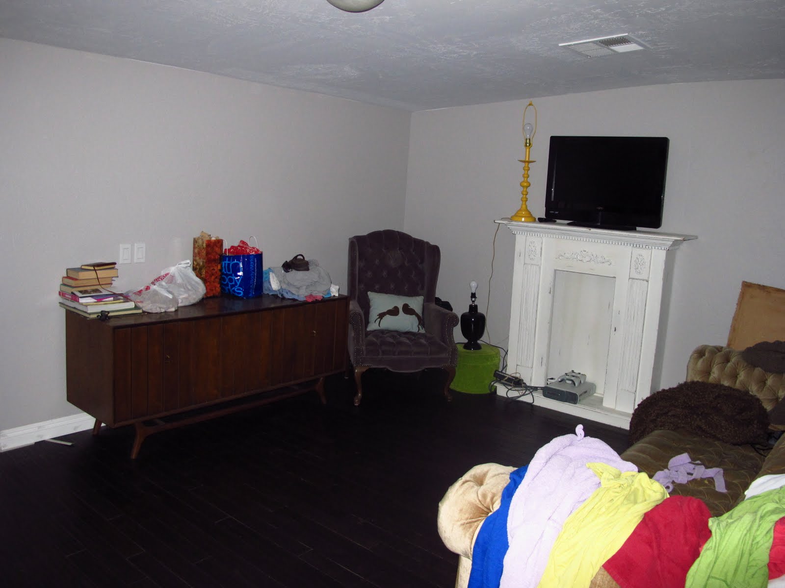 Apparently the rad Zenith radio has made itself my random storage place. And the gold couch? Oh that just holds clothes!